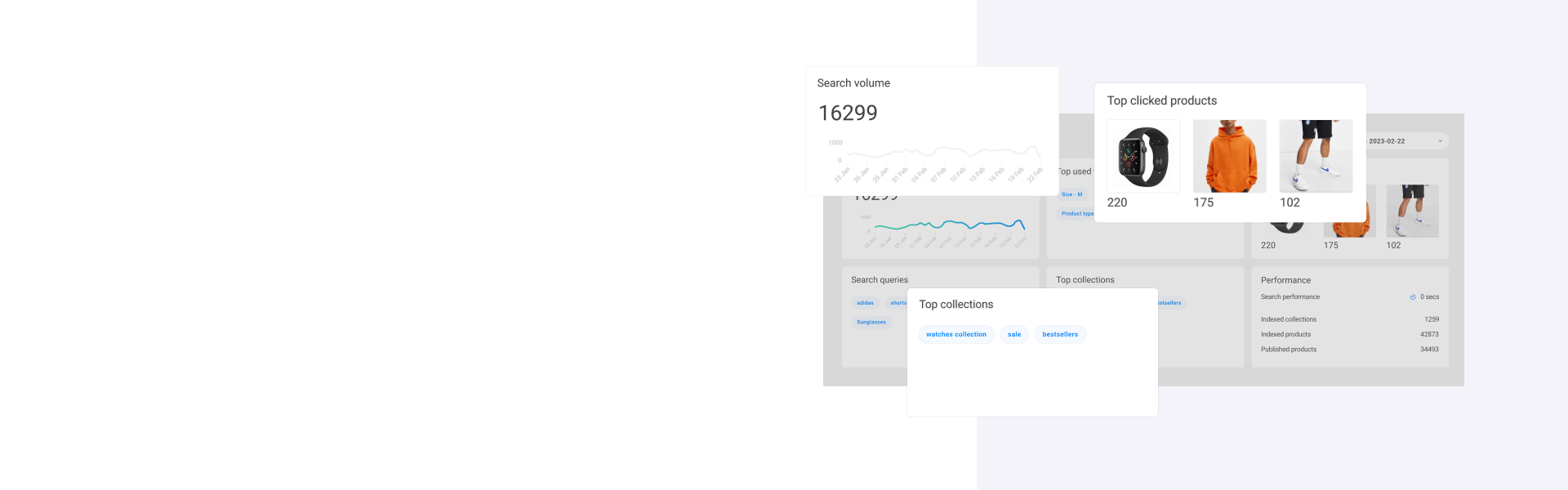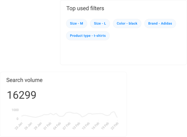 Gain valuable insights into your customers' shopping behaviors with our analytics dashboard. Our data-driven reports provide in-depth information on important site search analytics and collection filter activities, giving you a deeper understanding of your customers' needs and preferences